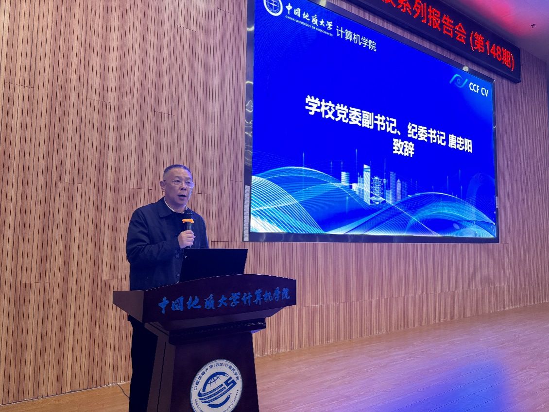 bat365官方网站(武汉)党委副书记、纪委书记唐忠阳出席会议并致欢迎辞。他回顾了bat365官方网站自2005年建院以来,在学科建设、人才培养、科学研究等方面取得的显著成就,特别是在人工智能、智能感知、地学信息处理等方向的特色发展。唐书记强调:bat365官方网站以建院20周年为契机,持续深化与CCF-CV等高水平学术平台的合作,推动了计算机学科高质量发展,服务于国家科技自强战略。