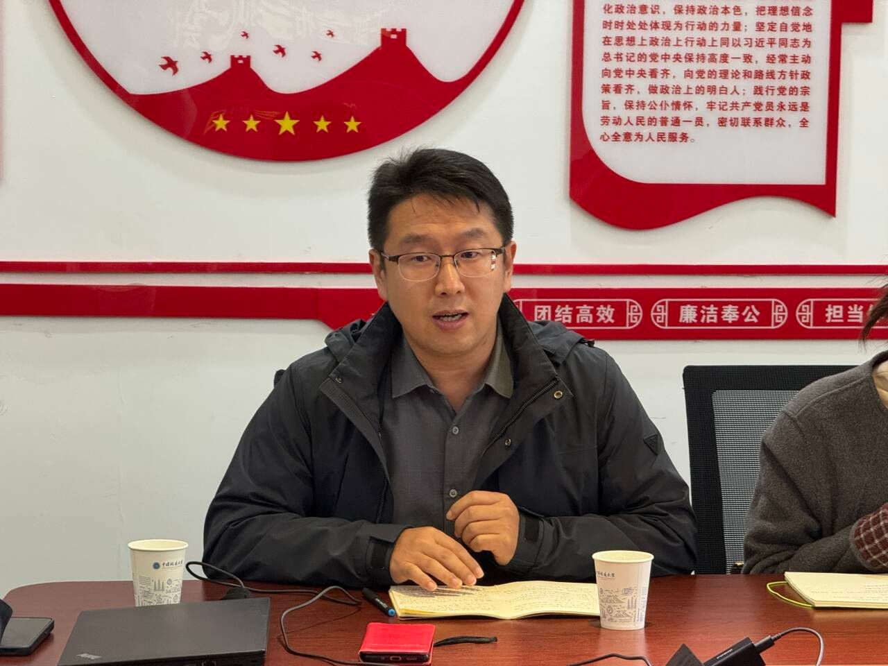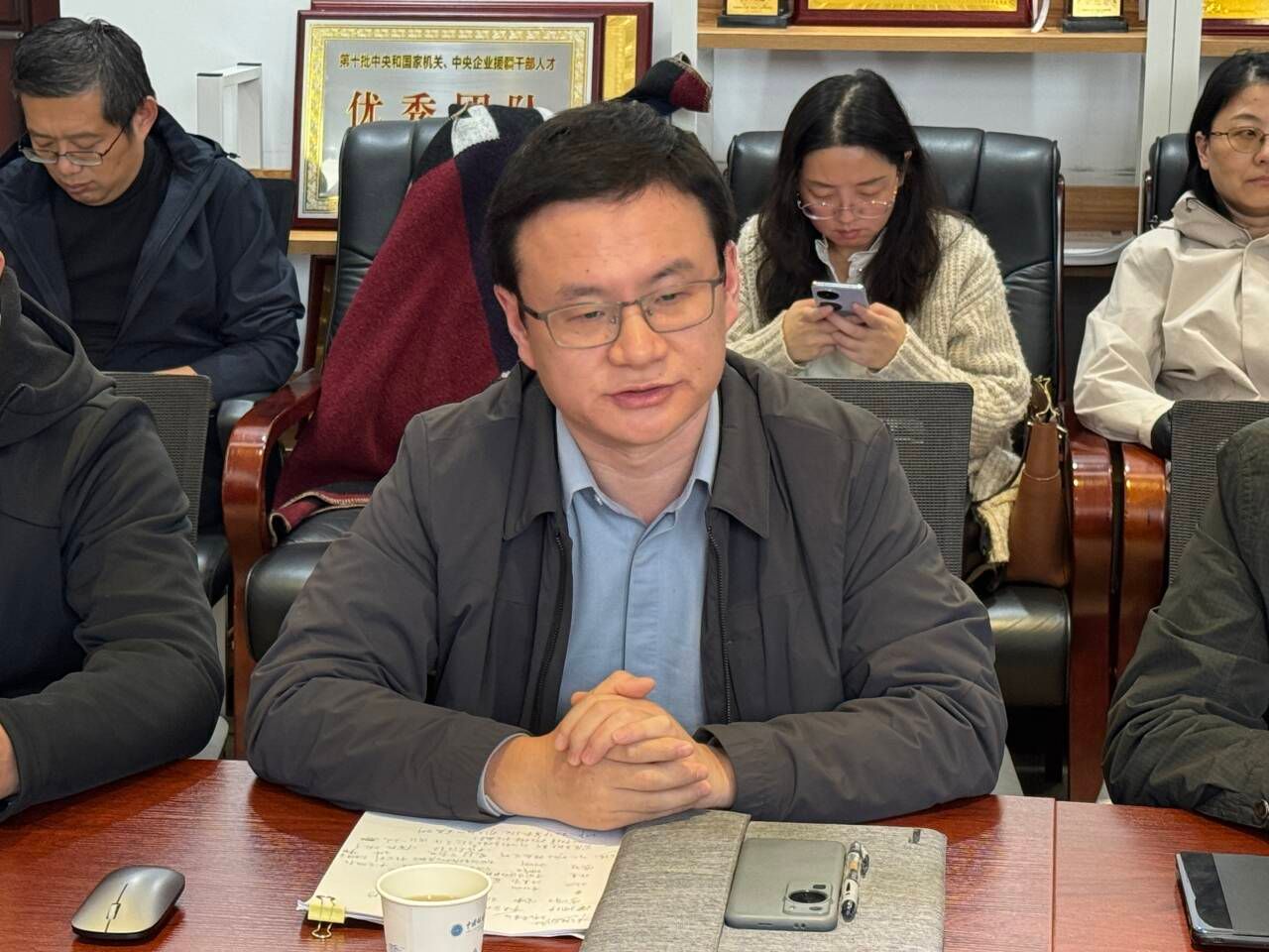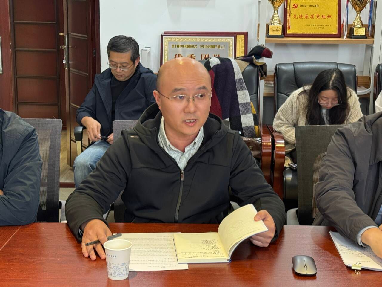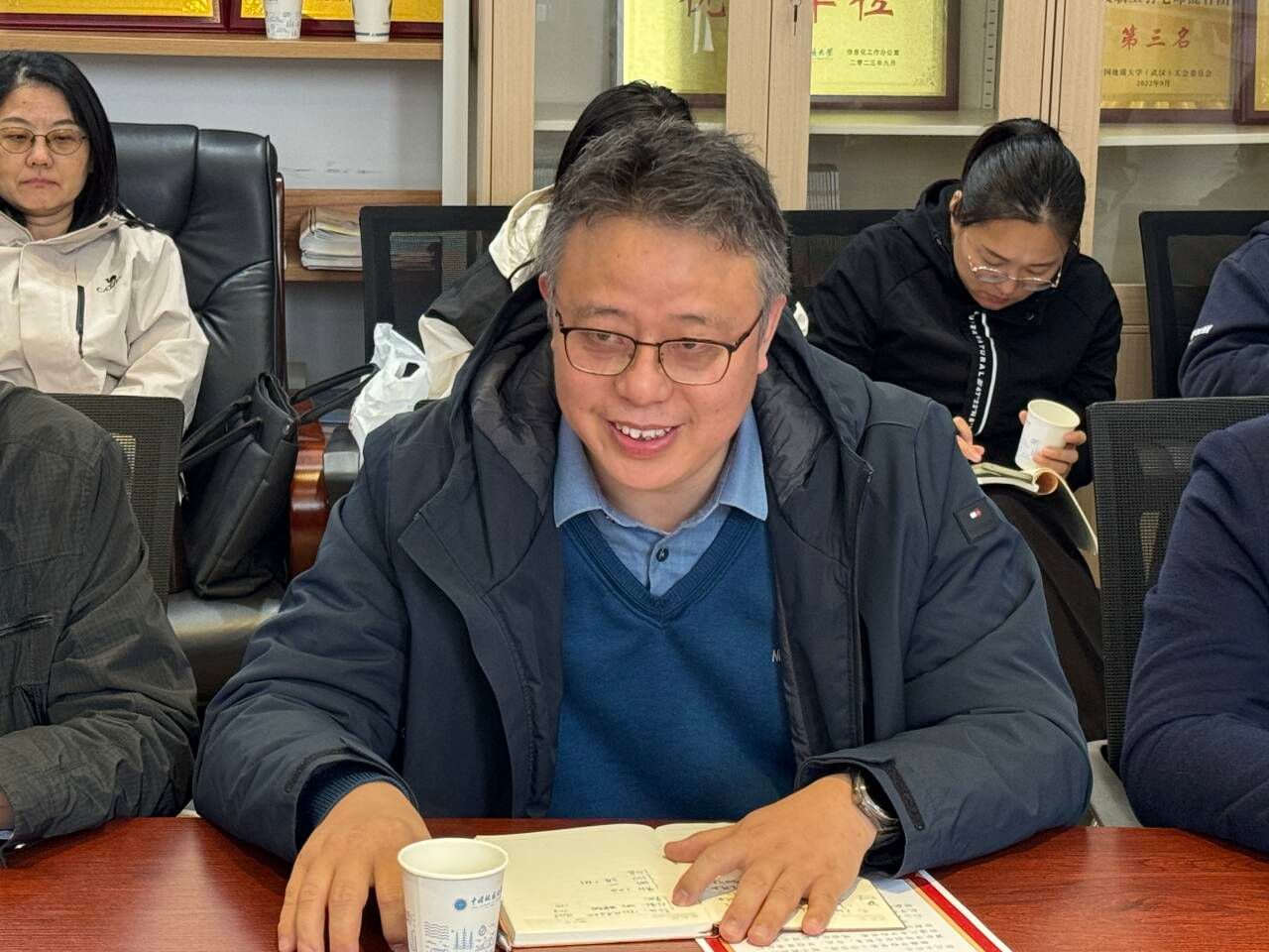 胡成玉同志作离任发言。他感谢学校和学院的培养,感谢一起奋斗的同志。他表示,近年来,学院科研实力和学术水平明显提升,作为学院高速发展的见证者、参与者和推动者,感到十分自豪与光荣。最后祝愿学院学科发展越来越好。