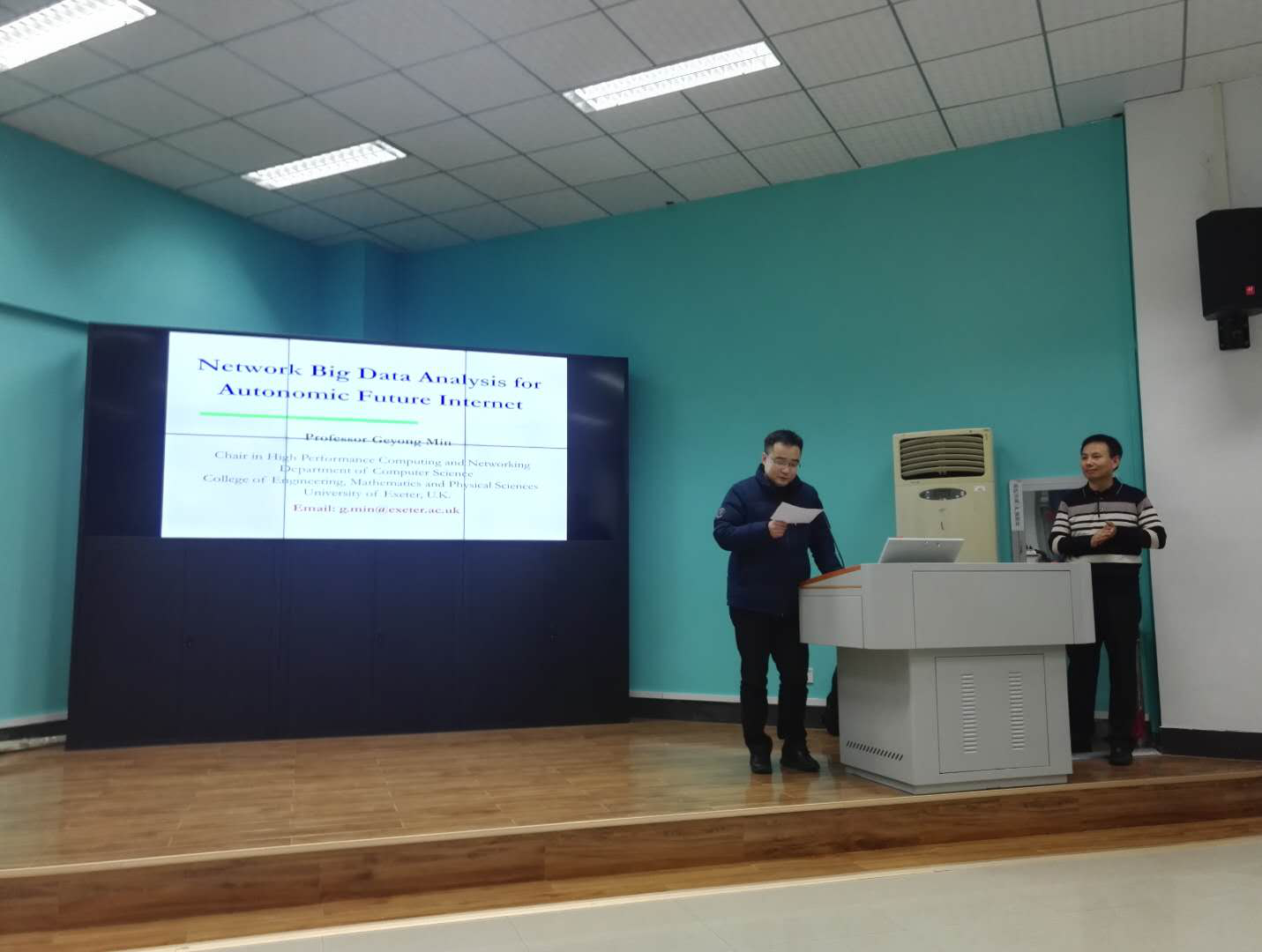 1月2日,应bat365官方网站院长王力哲教授的邀请,英国Exeter大学(计算机学科首席教授)闵革勇教授来院访问,并做了题为“Network Big Data Analysis for Future Intelligent Internet”的学术报告。闵革勇教授在计算机/通信学科的IEEE与ACM国际顶级期刊上发表学术论文140余篇,多次获得会议最佳论文奖,现任6个国际期刊的编委(含计算机学科顶级国际期刊IEEE Transactions on Computers),18个国际期刊专刊的编辑,先后担任了18个国际会议/研讨会的大会主席和程序委员会主席,80多个国际学术会议的程序委员会委员,并在多个国际学术会议与研讨会上做大会特邀主题报告。学术报告在王力哲教授的郑重介绍下正式开始。