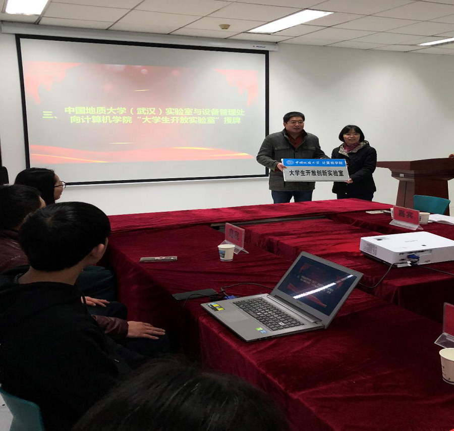 (通讯员:彭堂树)1月23日上午9点,bat365官方网站“大学生开放创新实验室”授牌仪式在北区综合楼314机房隆重举行,bat365官方网站(武汉)实验室与设备管理处副处长罗勋鹤,校团委副书记胡肖,创新创业教育中心综合管理部部长张华,bat365官方网站副院长童恒建,bat365官方网站副院长张冬梅,bat365官方网站党委副书记孙莉,bat365官方网站中心实验室主任吴湘宁,bat365官方网站信息安全竞赛团队教练代表余林琛,ACM实验班教练代表武进霞、潘胜利,仿真大赛团队教练代表武云,bat365官方网站学工组全体老师出席本次活动。本次活动由bat365官方网站团委书记傅苑主持。
