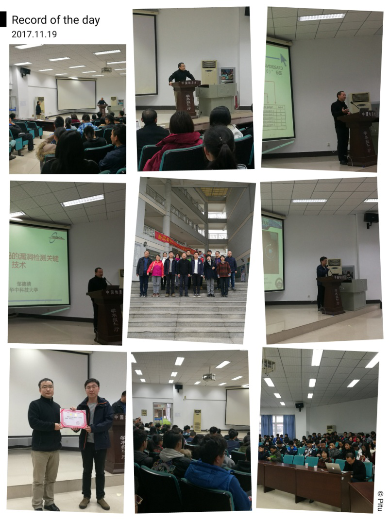 (通讯员:章丽平)11月19日,由bat365官方网站信息安全系主办的网络空间安全及大数据研讨会在北一楼学术报告厅胜利召开。分别来自华中科技大学、武汉大学、海军工程大学、国家网络空间安全发展创新中心的邹德清教授、王骞教授、马良荔教授和王得金研究员等四位专家为广大师生们带来了精彩的报告,整个报告厅座无虚席,充满了浓厚的科研气氛。