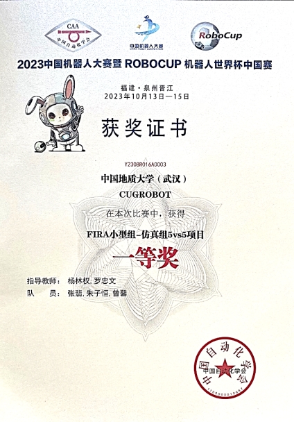 10月13至15日,2023年“中国机器人大赛暨RoboCup机器人世界杯中国赛”在福建晋江国际会展中心落下帷幕。经过激烈的比赛,bat365杨林权副教授和罗忠文教授指导的学生团队勇夺FIRA仿真组5vs5项目第3名、国赛一等奖和仿真组11vs11项目的第3名、国赛一等奖。
