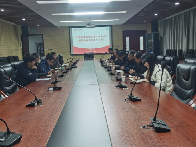 12月22日上午,未来城校区管理办公室(下称校区办)主任王文起,副主任马红祥、罗勋鹤、李雨竹,携相关科室负责人姜力维、杨叶、吴优、谢晓来bat365调研交流。bat365党委书记李国昌、副书记林小艳、办公室主任石剑峰、工会委员李程俊、纪委委员郭晓兰、研究生秘书郑晓军参加交流。