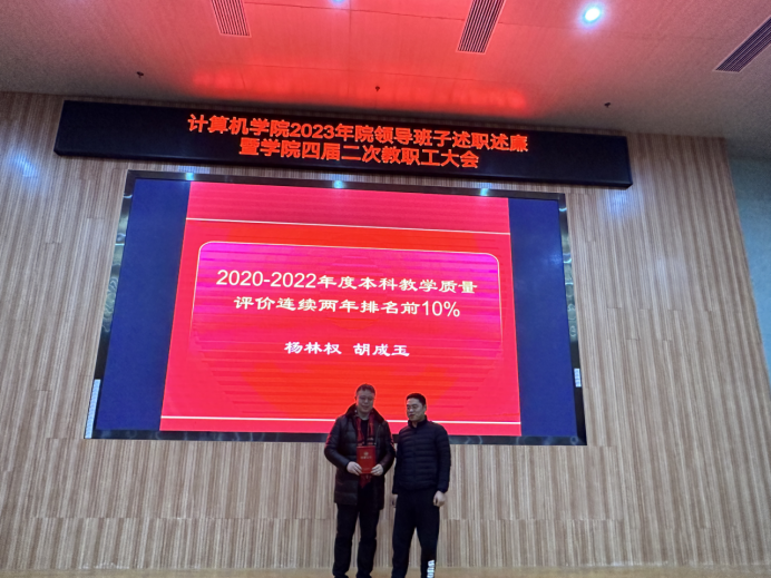 李国昌代表院领导班子作2023年述职报告。他表示,2023年,学院坚持党建引领,师生政治站位进一步提升,党的建设全面加强,全面从严治党深入推进,校友、工会、统战、群团和安全稳定等工作保障有力,学院办学水平进一步提升;学院坚持攻坚克难,“十四五”规划总体进展顺利,学科平台建设成效显著,师资队伍建设稳步推进,高水平人才培养机制不断完善,课程建设取得新成绩,学科竞赛生态不断优化,招生就业取得优异成绩,学院的思政教育成果不断涌现,科研能力大幅提升,学术交流合作与社会服务方式日益多元,内控机制逐步完善,学院实现高质量发展。同时他还指出学院领导将继续提升素质与能力,坚定不移推进学院2024年工作不断取得新的成绩。