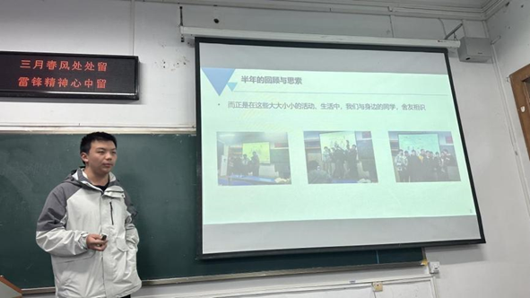 随后各班学委向同学们作学情分析报告。学委从班级整体绩点情况、优秀率、挂科率入手,肯定了同学们在上一学期的生活学习中取得的成绩,同时指出部分同学仍存在不足之处,勉励取得优秀成绩的同学不自傲,接续努力,在新学期里再创佳绩,鼓励成绩不够理想的同学不要气馁,在新学期更加专注于学习,实现自我的突破。此外,学委在分析上学期挂科科目情况后,提醒同学们要格外注意高数和线上课程的学习。