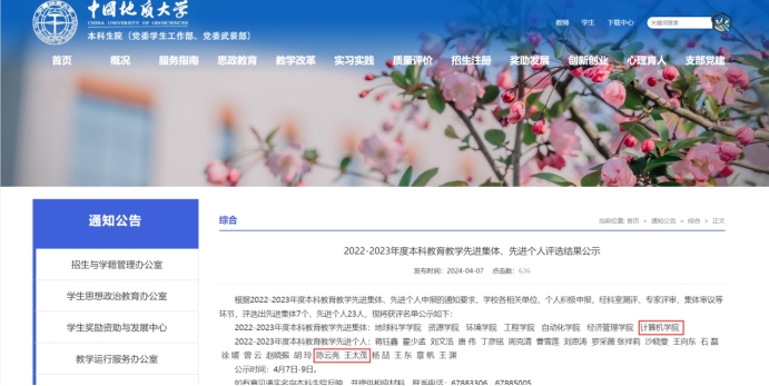 近日,学校发布了《2022-2023年度本科教育教学先进集体、先进个人评选结果公示》,bat365再次获评“2022-2023年度本科教育教学先进集体”,这也是bat365连续两次获此殊荣。此外,由于在教学改革、教师教学发展领域的卓越工作,陈云亮副院长、王太茂老师获评“2022-2023年度本科教育教学先进个人”。