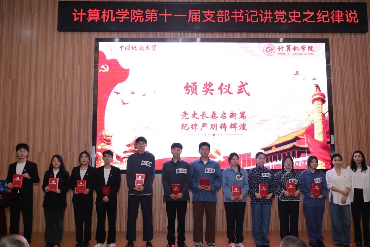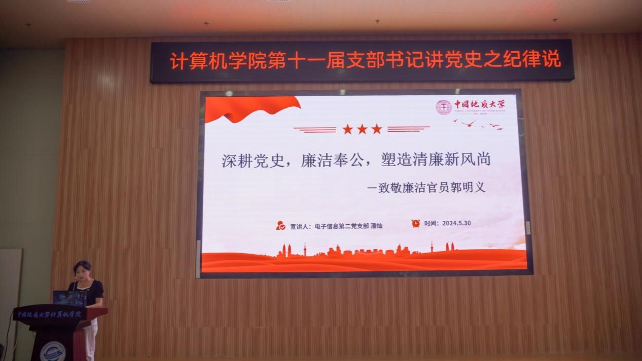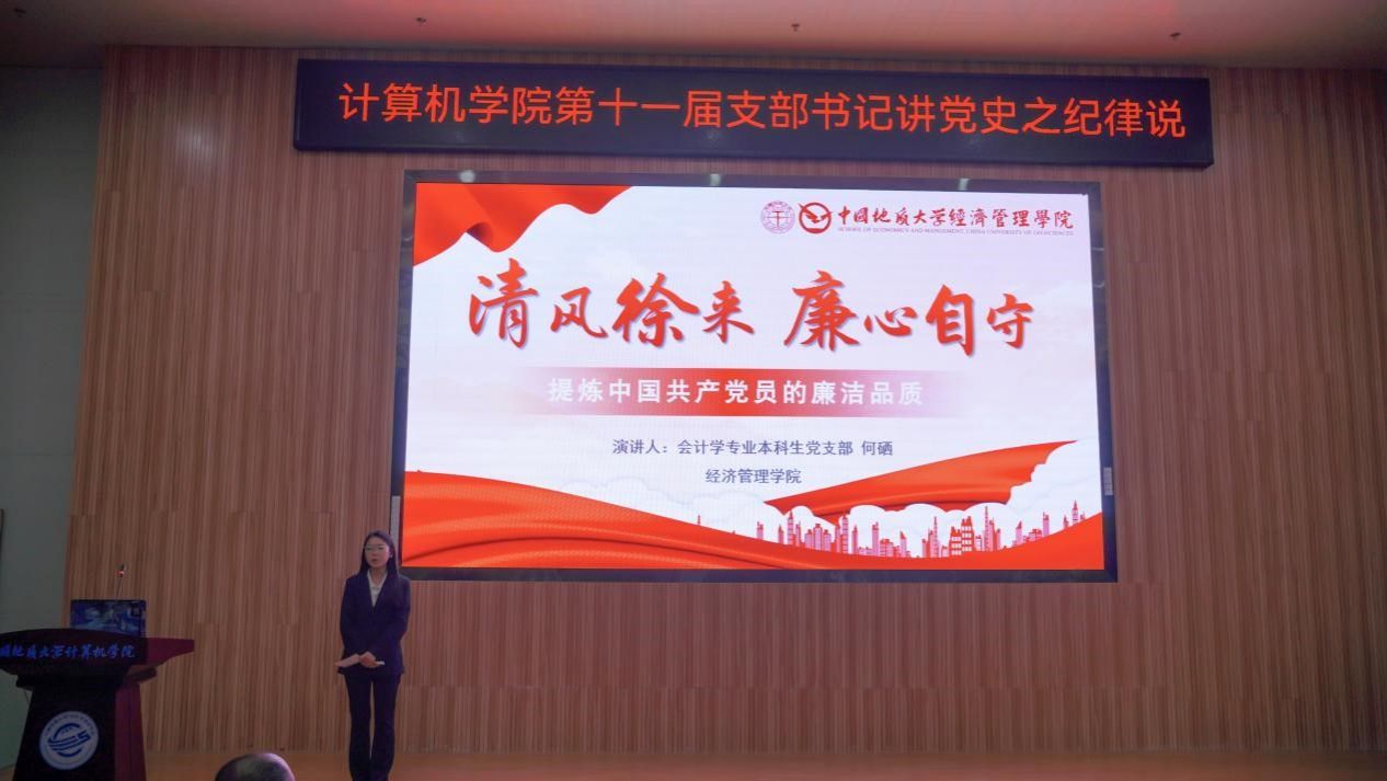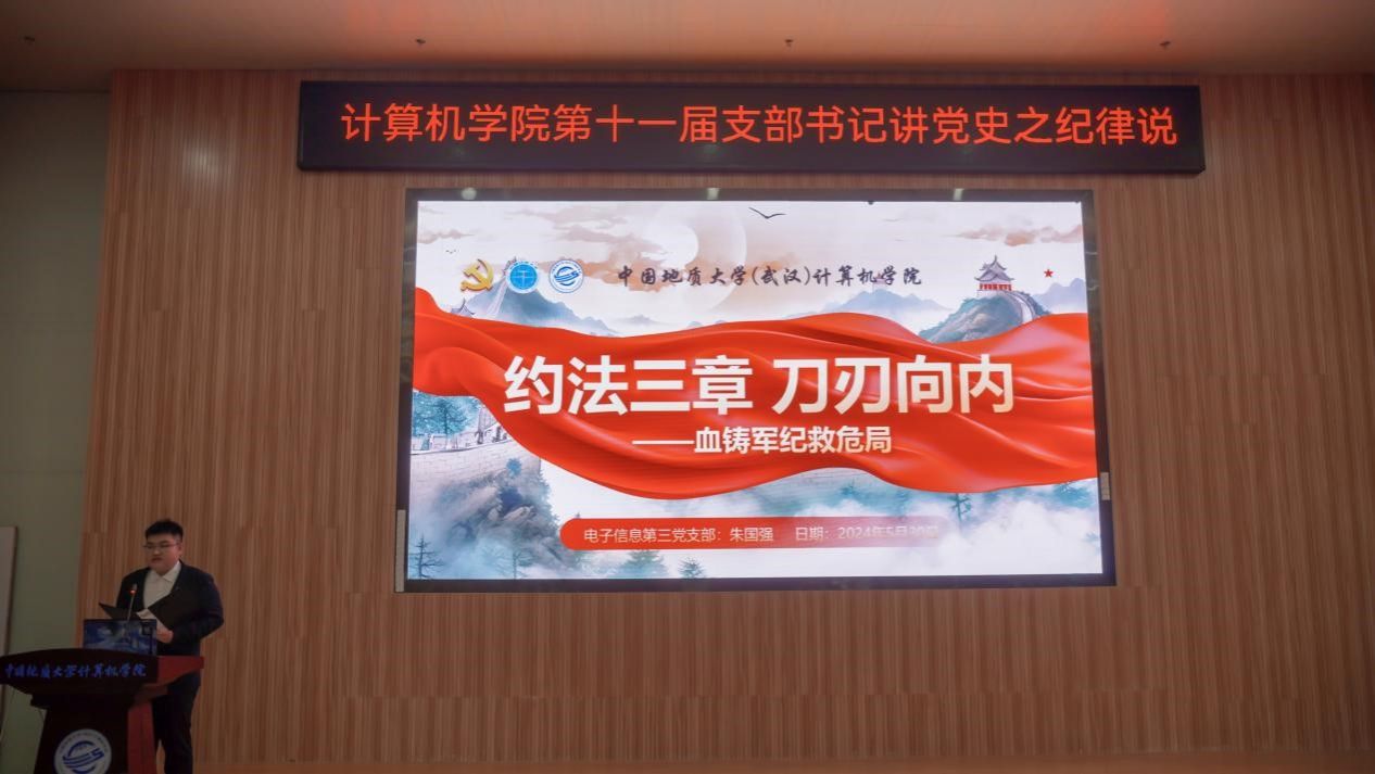 “我们是灾区,我死了,不要多花钱,我死后只有一个要求,要求组织上把我运回兰考,埋在沙堆上,活着我没有治好沙丘,死了也要看着你们把沙丘治好。”......舞台上,bat365官方网站空间信息工程党支部和经济管理学院生态文明研究生党支部的党员代表们生动演绎着《焦裕禄》,他们以一场独具特色的话剧将现场气氛推向了高潮,生动诠释了“亲民爱民、艰苦奋斗、科学求实、迎难而上、无私奉献”的“焦裕禄精神”。5月30日下午,bat365官方网站在学院126报告厅举办第十一届支部书记讲党史之纪律说暨党员骨干集中培训活动。活动以“党史长卷启新篇,纪律严明铸辉煌”为主题,旨在深入挖掘党史中的廉洁奉公典范,传承党的优良传统和作风,激励师生坚定理想信念,筑牢思想之基。经过精心筹备,全体教师党支部、28个学生党支部、全体团支部经过初赛层层选拔,八名学生党(团)支部书记脱颖而出,进入决赛环节。同时,获奖的教师党支部书记代表马钊老师、校友代表肖飞龙以及bat365官方网站党委书记李国昌讲授了精彩的示范党课。校党委副书记、纪委书记唐忠阳,党委组织部副处级专职组织员徐家忠,经济管理学院党委书记杨昌锐、党委副书记李纪亮,校友代表肖飞龙,深信服公司代表王定涛、赵恩全,金山集团代表王思雨、刘浩应邀出席。bat365官方网站党委书记李国昌、党委副书记林小艳、辅导员谭文博和进入复赛的学生党、团支部代表现场观摩。学生党建办公室叶岭岚担任活动主持。
