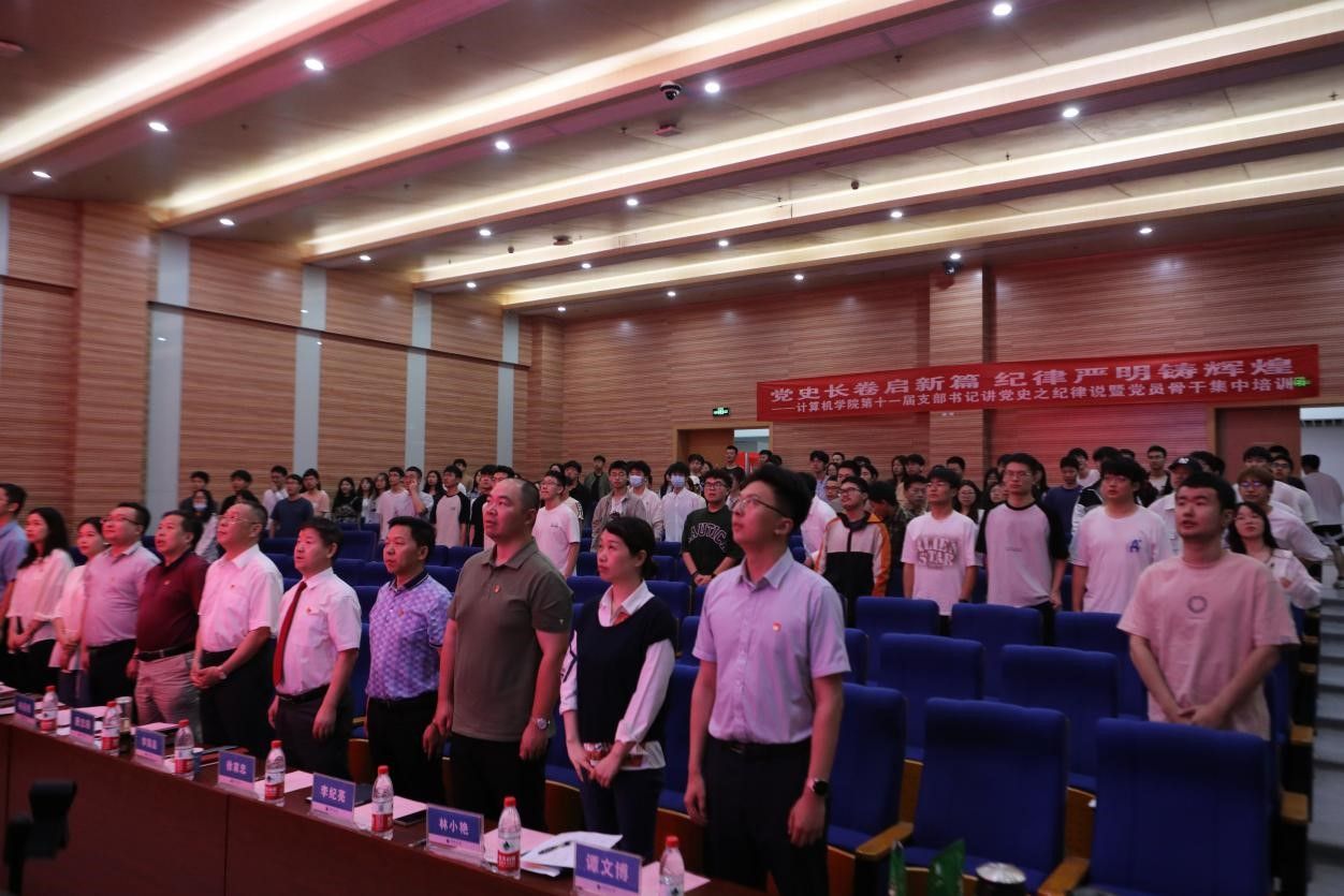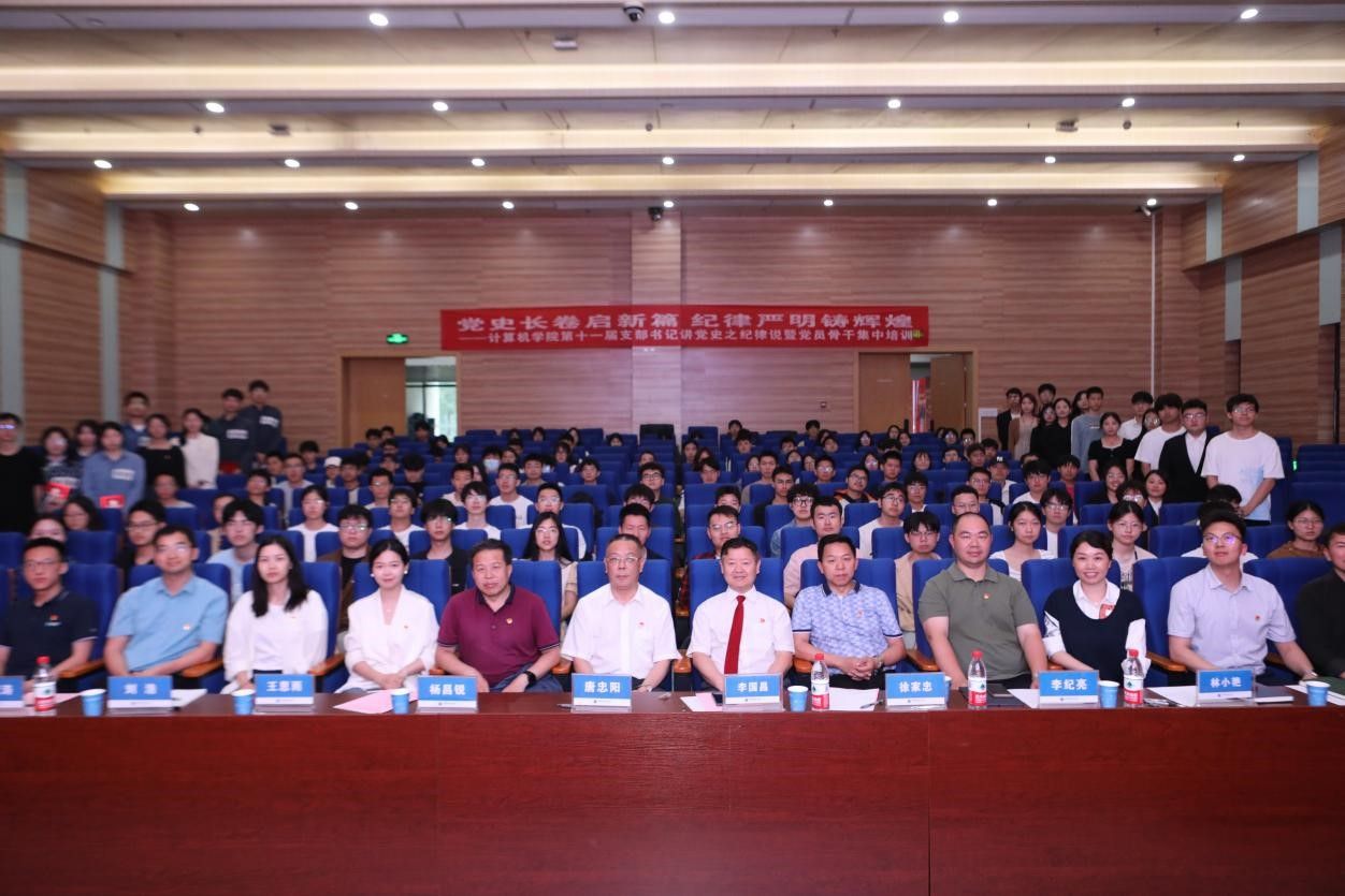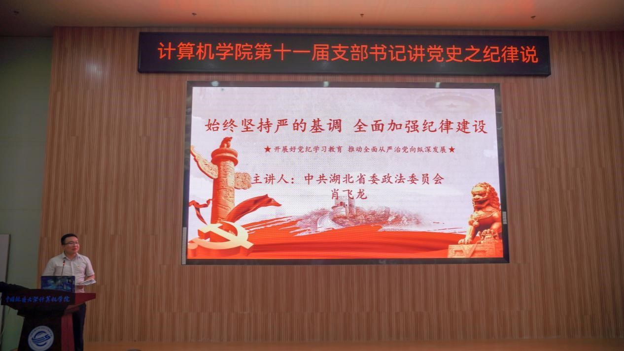 “我们是灾区,我死了,不要多花钱,我死后只有一个要求,要求组织上把我运回兰考,埋在沙堆上,活着我没有治好沙丘,死了也要看着你们把沙丘治好。”......舞台上,bat365官方网站空间信息工程党支部和经济管理学院生态文明研究生党支部的党员代表们生动演绎着《焦裕禄》,他们以一场独具特色的话剧将现场气氛推向了高潮,生动诠释了“亲民爱民、艰苦奋斗、科学求实、迎难而上、无私奉献”的“焦裕禄精神”。5月30日下午,bat365官方网站在学院126报告厅举办第十一届支部书记讲党史之纪律说暨党员骨干集中培训活动。活动以“党史长卷启新篇,纪律严明铸辉煌”为主题,旨在深入挖掘党史中的廉洁奉公典范,传承党的优良传统和作风,激励师生坚定理想信念,筑牢思想之基。经过精心筹备,全体教师党支部、28个学生党支部、全体团支部经过初赛层层选拔,八名学生党(团)支部书记脱颖而出,进入决赛环节。同时,获奖的教师党支部书记代表马钊老师、校友代表肖飞龙以及bat365官方网站党委书记李国昌讲授了精彩的示范党课。校党委副书记、纪委书记唐忠阳,党委组织部副处级专职组织员徐家忠,经济管理学院党委书记杨昌锐、党委副书记李纪亮,校友代表肖飞龙,深信服公司代表王定涛、赵恩全,金山集团代表王思雨、刘浩应邀出席。bat365官方网站党委书记李国昌、党委副书记林小艳、辅导员谭文博和进入复赛的学生党、团支部代表现场观摩。学生党建办公室叶岭岚担任活动主持。