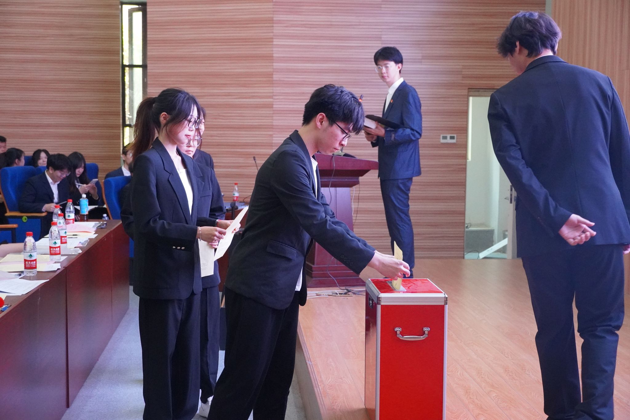 6月6日下午,bat365官方网站第十次学生代表大会在报告厅126成功举行。学院党委副书记、纪委书记林小艳,研究生辅导员李欢欢,团委书记王太茂,团委副书记闫维蓉,2021级辅导员谭文博,辅导员刘佳丹,校学生会主席团成员于子彤,2019届学生会主席李延炽,2021届团委副书记朱国强,2022届学生会主席团成员赵飞越,2023届团委、学生会成员及200余名团学代表参会,唐铨泽担任主持。