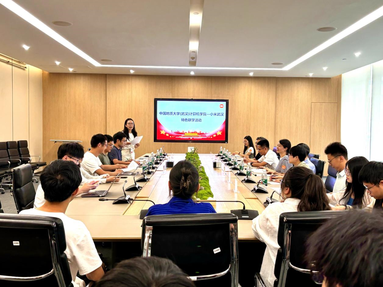 活动由小米武汉智能数据云党支部宣传委员唐帆主持。小米集团技术委员会武汉研发中心副总经理周代国、武汉研发中心小爱工程师肖洒、武汉研发中心商务经理陈淑娴、小米集团技术委员会基础技术平台部工程师韩望欣、学院在小米武汉实习的28名党员代表参加。