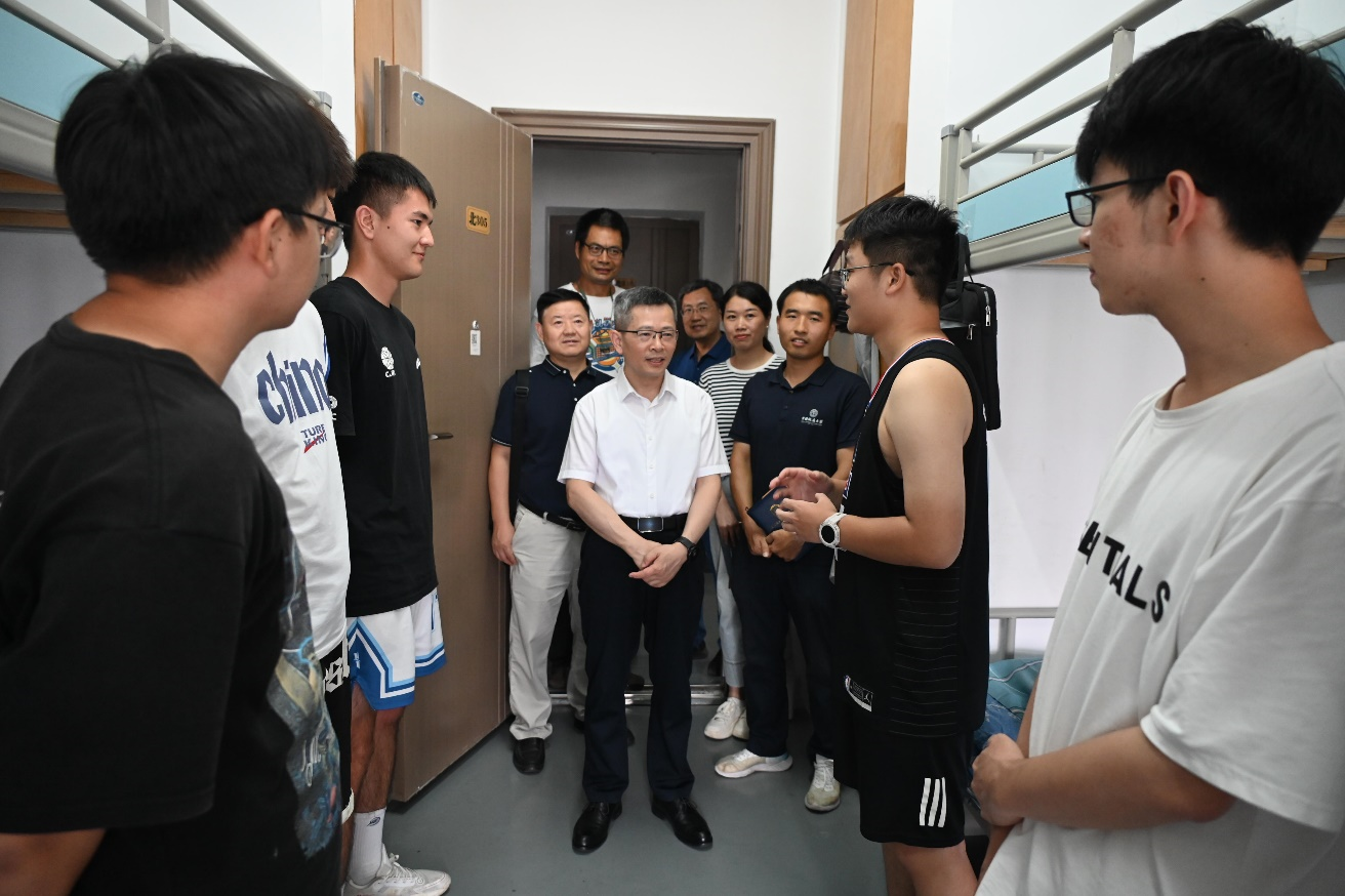 座谈会结束后,李国昌一行陪同校领导深入宿舍,与同学们交流实习生活的日常点滴。同学们纷纷表示,感谢学校学院领导的关心和慰问,他们将以更加饱满的热情投入到实习工作中,提升专业能力、磨砺吃苦精神、勇担时代之责。