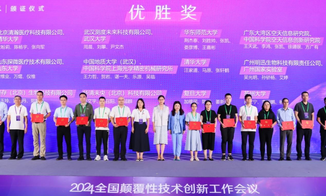 会议为2024年全国颠覆性技术创新大赛获奖项目进行颁奖。我校王力哲教授团队联合中国科学院上海光学精密机械研究所的项目“低功耗高精度光子计数激光雷达透视遥感系统”获得全国颠覆性技术创新大赛优胜奖。