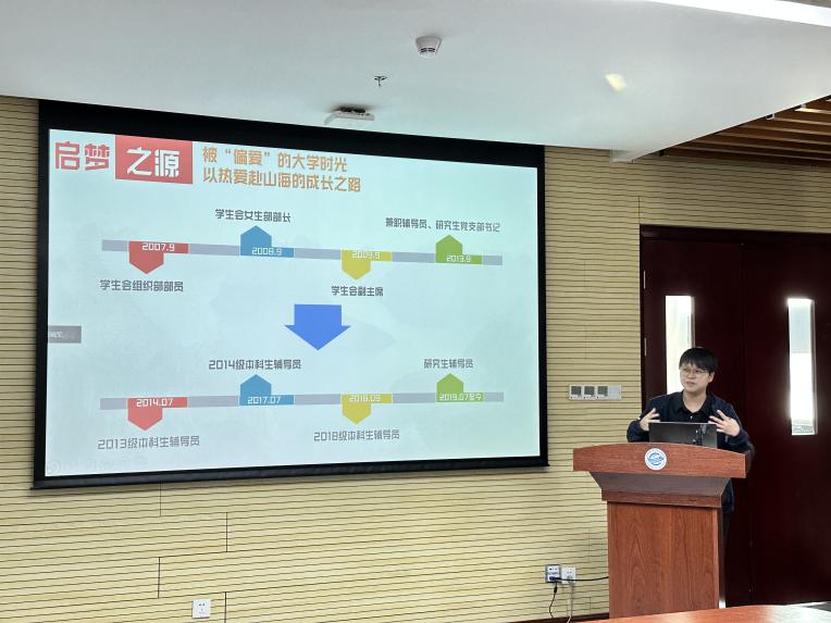 李欢欢以“青春梦想合伙人——辅导员工作实践与体会”为主题,从启梦之源、筑梦之旅、伴梦之行、逐梦之思四个方面向做汇报和交流。她认为,是学生时代地大、bat365官方网站的无私培养、关怀和温暖,坚定自己留校做辅导员的信念;是优良的学院教风学风和学工传统,使自己在学生思政教育与专业教育融合、专业技能与社会服务能力融合、专业理论学习与双创实践融合、教育管理与学生综合发展方面进行了积极探索,并收获成长与荣誉,成为学院这么多年来一代代优秀学生工作者薪火相传中的一把火、一束光。她表示,高校老师作为学生的“青春梦想合伙人”,在帮助学生追梦和圆梦的过程中,也在实现自己的人生梦想和人生价值。