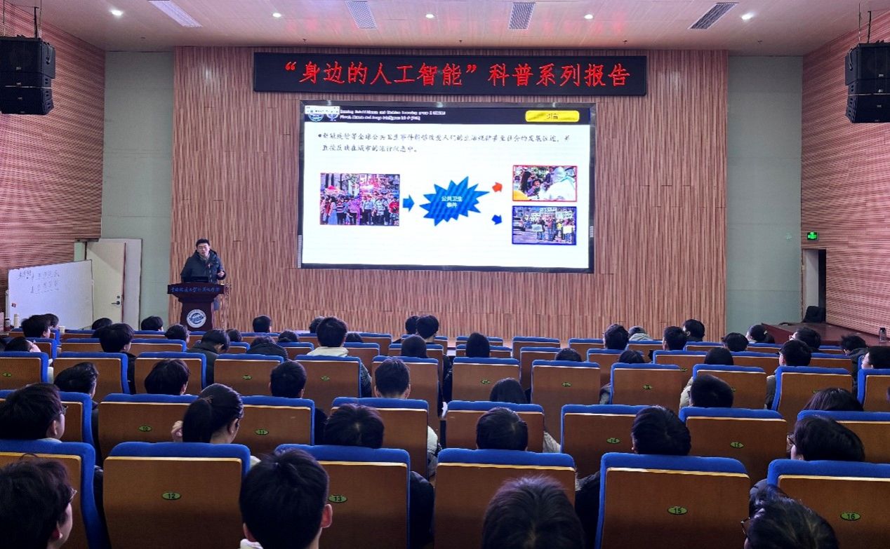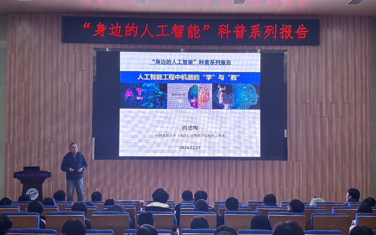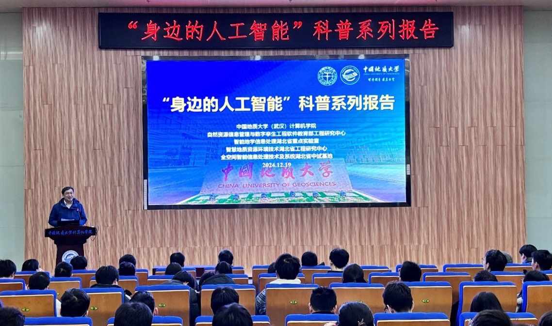 习近平总书记指出:“科技创新、科学普及是实现创新发展的两翼,要把科学普及放在与科技创新同等重要的位置”。为促进bat365科学技术普及工作,弘扬科学精神,激发创新活力,12月19日下午,学院举办的“身边的人工智能”科普系列报告活动在计科楼126报告厅进行,邀请了武汉大学测绘遥感与信息工程国家重点实验室武辰教授、bat365数据科学与大数据系李程俊副教授、计算机应用系陈麒玉教授、智能科学与技术系黄绍广教授、软件工程系尚建嘎教授、信息安全系朱静副教授、计算机科学与技术系甄慧翔副教授作专题科普报告,学院副院长刘刚主持活动。报告会得到了自然资源信息管理与数字孪生工程软件教育部工程研究中心、智能地学信息处理湖北省重点实验室、智慧地质资源环境技术湖北省工程研究中心、全空间智能信息处理技术及系统湖北省中试基地等科研平台的支持,也是bat365建设的武汉市科普基地的活动之一。200余名师生参加了本次活动。