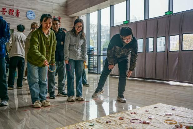为营造新年喜庆氛围,引领广大研究生身心健康成长,丰富校园文化生活,bat365官方网站于12月27日下午在bat365官方网站一楼大厅举行“奋进计科人,共赏传统美”师生新年游谊会。活动设置多个丰富多彩的活动项目,灯谜竞猜、套圈、投壶、剪纸、书法体验等传统文化与趣味互动相结合,精彩纷呈!为大家带来了欢乐与惊喜,激发了创意与活力,在放松身心的同时,也感受到了浓厚的节日气氛与传统文化的魅力。下面让我们一睹活动的精彩现场吧!