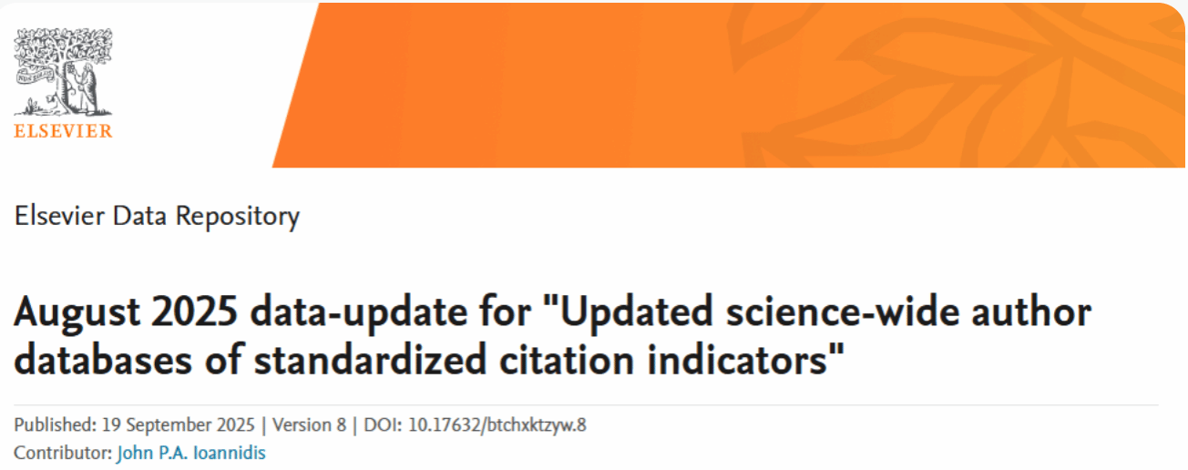 2025年9月,美国斯坦福大学和爱思唯尔更新了标准引文指标的全科学作者数据库,重磅发布了《2024年度全球前2%顶尖科学家榜单》(Stanford/Elsevier Top 2% Scientists List),bat365多名教师上榜。