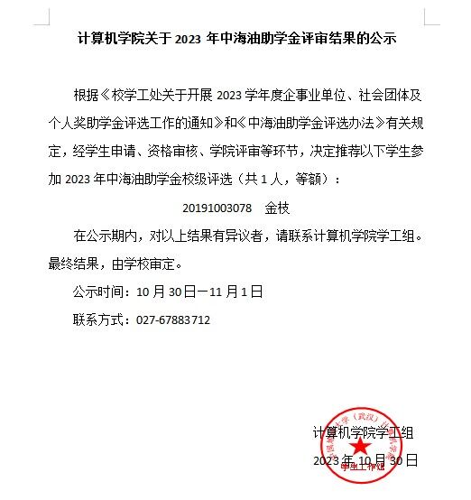 bat365官方网站关于2023年中海油助学金评审结果的公示