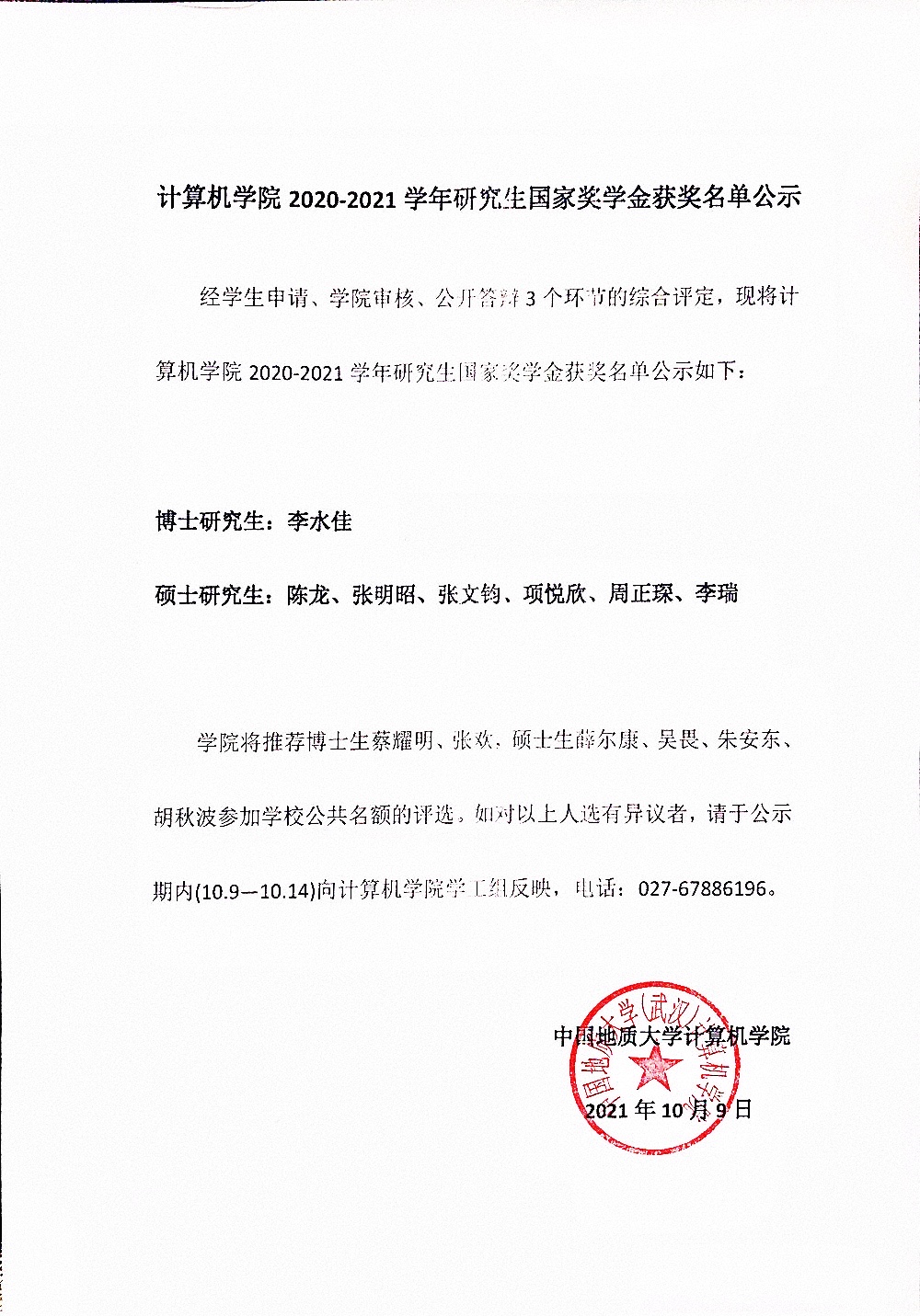 bat365官方网站2020-2021学年研究生国家奖学金获奖名单公示