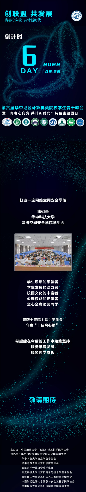 重磅 第六届华中地区计算机类院校学生骨干峰会倒计时6天!