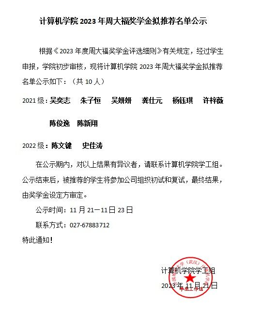 bat365官方网站2023年周大福奖学金拟推荐名单公示