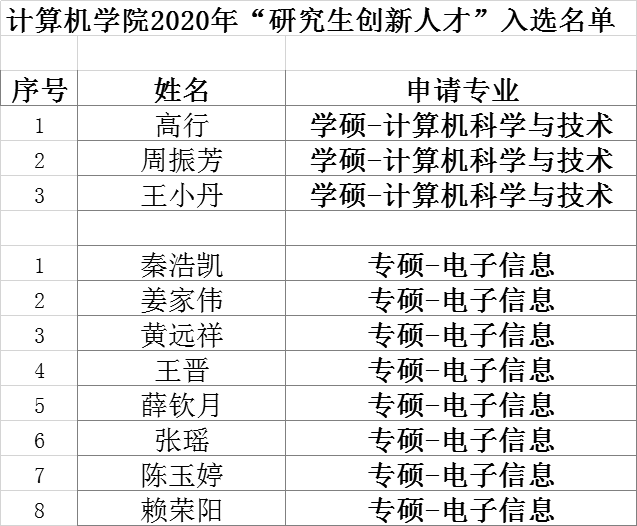 bat365官方网站2020年“研究生创新人才”选拔入围学生名单