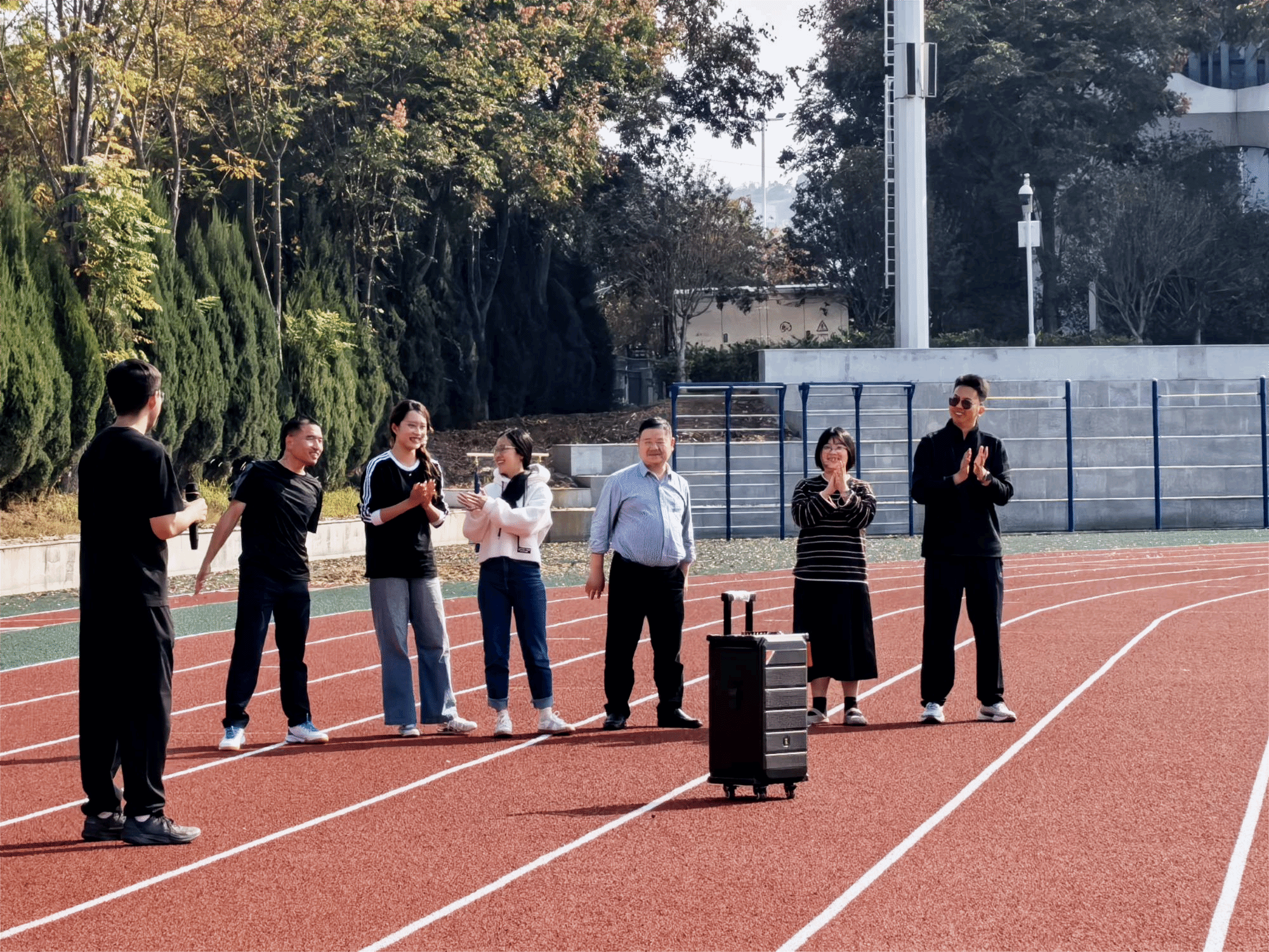 活动伊始,学院党委书记李国昌致辞。他代表学院对活动的顺利举办表示热烈祝贺,对积极参与的师生表示诚挚问候。李书记指出,学院历来高度重视研究生的全面发展与身心健康,趣味运动会不仅是一场运动竞技的盛会,更是师生沟通交流、凝聚共识的重要契机。他提到,近年来学院研究生规模不断扩大,活动参与度逐年攀升,充分体现了计科学子积极向上的精神风貌和强烈的集体荣誉感。他鼓励同学们在科研学习之余积极参与体育锻炼,以健康的体魄和充沛的精力迎接学习和生活中的挑战;也希望大家通过团队活动增进了解、加强协作。最后,他预祝本次趣味运动会圆满成功,祝愿全体师生在运动中收获快乐、收获友谊、收获成长。