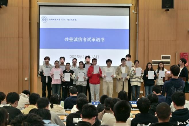 各班学习委员作为班级代表上台,共同签署《诚信考试承诺书》,以庄重的仪式感承诺严守考试纪律,践行诚信准则,树立优良考风。