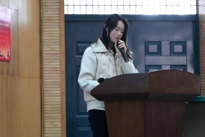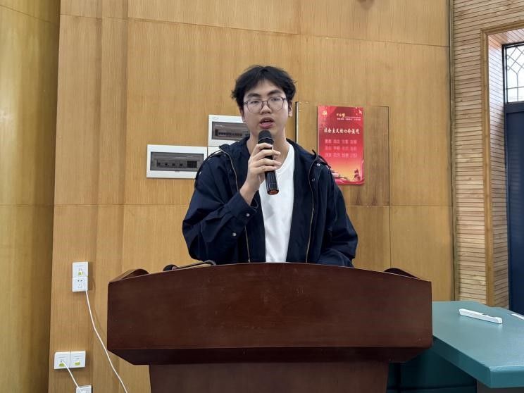学风组刘晶晶宣读学风建设倡议书,呼吁全体新生树立远大理想、珍惜求学时光、主动钻研学业。她还针对保研政策进行系统解读,从推免资格获取、时间节点规划到目标院校选择等关键问题展开说明,为同学们的学业发展路径提供清晰指引。