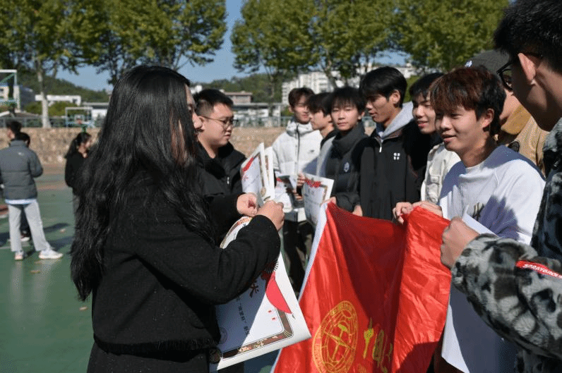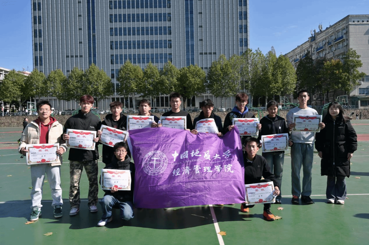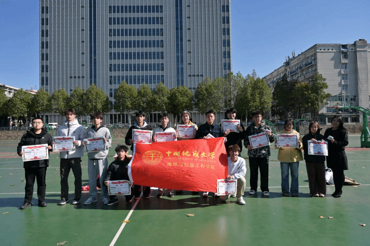 历经多轮对决,各支队伍的排名尘埃落定。六院辅导员依次登台,为获奖队伍颁发荣誉。bat365官方网站凭借稳定发挥与顽强斗志,成功摘得季军;经济管理学院实力强劲、默契十足,一路披荆斩棘荣获亚军;地理与信息工程学院在多场硬仗中奋勇拼搏、锐不可当,最终问鼎冠军!领奖台上,队员们手捧奖品与证书,笑容灿烂、眼神坚定,每一份荣誉都凝聚着日夜训练的汗水,彰显着团队协作的力量。