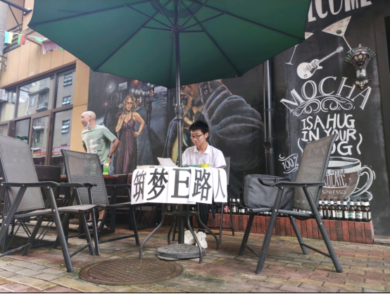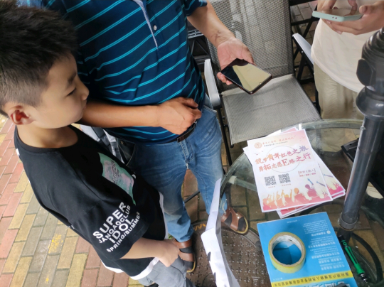 上午,团队成员李子豪在自己所属社区内寻找合适的摆摊地点,并提前向附近居民说明来意。该地点空旷通风,避免了人群拥挤带来的潜在风险。热心的社区居民,更是为志愿服务提供了遮阳伞、桌子、椅子等摆摊工具。