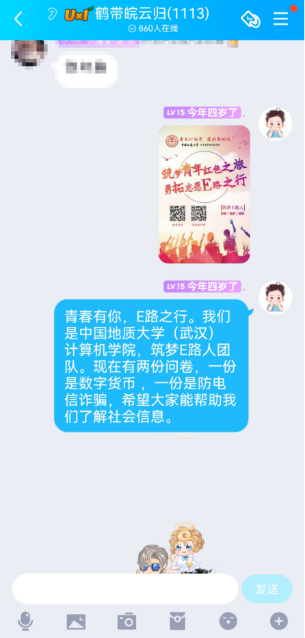 志愿服务之余,“筑梦E路人”团队热情地邀请社区居民扫码填写“数字货币”与“防电信诈骗”线上问卷,面向社会继续扩大问卷覆盖范围,积累数据,为团队后期分析问卷,撰写报告,解决问题奠定基础。