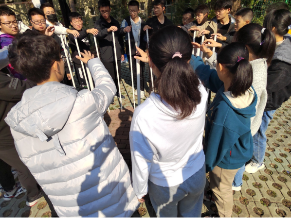 这是一个需要勇气与智慧的项目。同学们在开始前积极发言,贡献自己的策略。游戏过程中,大家分工有序,大部分人排队等待去“排雷”,小部分人站在“雷区”的旁边,指挥队友行进,并且记住正确的道路。在游戏结束后,大家拥抱欢呼,并且一同总结刚才的得与失。冷静的头脑,有序的团队分配,面对失败时有重新来过的勇气,这才是通关游戏的关键,也是青春该有的样子。