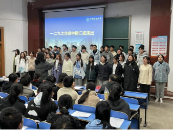 会议伊始,一二·九大合唱成员进行中期汇报演出,上台演唱《游击队之歌》。