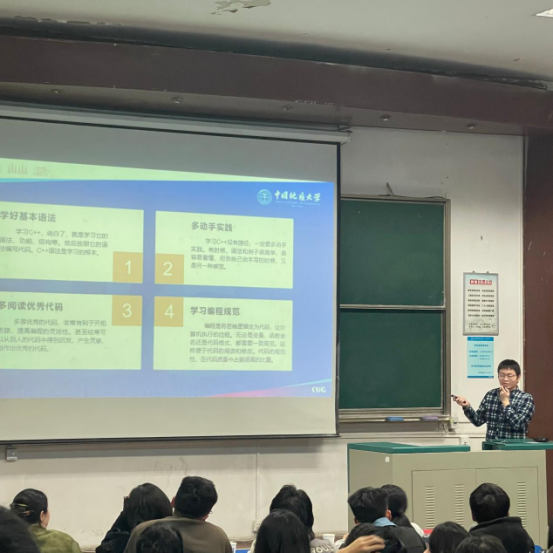 李雨静、张鹏、代德鸿分别讲解了寒假的安全注意事项、高数线代及c++复习技巧。安全方面主要强调回家过程中要保管好自身物品、不要听信陌生人讲话,合理规划自己的寒假生活,尽量减少外出。复习技巧方面强调要多请教、多做题、多实践,同时也给同学们推荐了相关指导书籍和学习网站,助力学生备战期末。