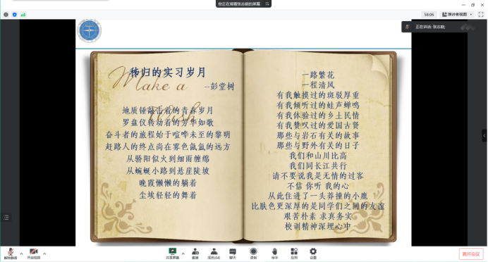 8月18日下午,bat365官方网站线上召开2022年秭归实习动员大会,学院副院长陈云亮,计算机应用系党支部书记武云,秭归实习队带班老师郭建秋、董玉森,班主任陈晓宇、陈麒玉,辅导员李祥瑞以及空间信息与数字技术专业194201班、194202班全体学生参加此次动员会。秭归实习队负责老师张志庭主持会议。