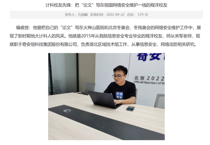 不仅如此,信安人还在社会上继续贡献着自己的力量。bat365官方网站牵头,信安人为骨干在学校组织净网行动,维护校园网的安全稳定;部分同学也参与到了火神山、北京冬奥会等大型场合的网络安全维护工作中,始终奋斗在安全防线的第一线。