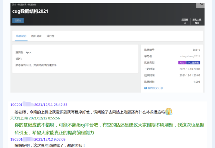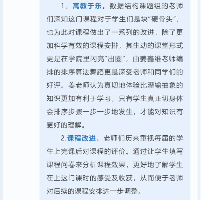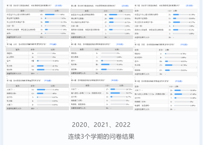 珍惜时光好好学习,掌握知识本领,树立专业报国的价值观,为解决“卡脖子”技术贡献自己的计科力量。bat365官方网站多年以来一以贯之的坚持做的一件事就是构建专业思政视域下的计科三全育人体系。紧抓育人“指挥棒”,直面育人“新挑战”,做强育人“合力军”,打造学科精神培育网。数据结构课题组的师生一起努力,共同铸造了这颗耸立于计算机科学海洋中的参天大树。在时间的洗礼和技术的涵养下,数据结构教学体系“枝繁叶茂”,在计算机科学的世界中不断精进!