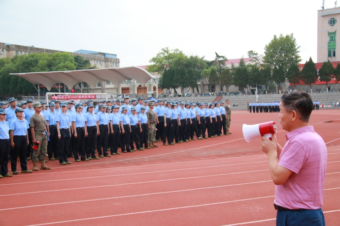 党委书记李国昌向同学们表达了学院的悉心关怀与问候,并对新生提出了殷切希望:一是锻炼强健体魄,借军训机会养成健康作息、调整身体状态,将吃苦耐劳、坚持不懈的品质镌刻在心中,以更好的面貌状态迎接大学生活;二是形成过硬作风,通过军训提高政治觉悟和家国情怀,提升奋斗精神和责任担当,以军人的标准严格要求自己,将在军训中养成的良好品格、作风和纪律延续到今后的学习、生活中去;三是磨炼坚强意志,鼓励同学们以饱满的热情和高昂的斗志投入训练,将“塑形”与“塑魂”相结合,在军训中磨练意志,努力成为具有“上天入地,下海登极”的地大新人;四是树立团队意识,全体参训同学要严格要求自己,热爱集体、关爱他人,在珍贵的军训时光中增强凝聚力和集体荣誉感;五是规划大学生涯,指导同学们要结合社会发展趋势、个人兴趣以及特长思考自己的大学目标,高质量地规划自己的大学生活。