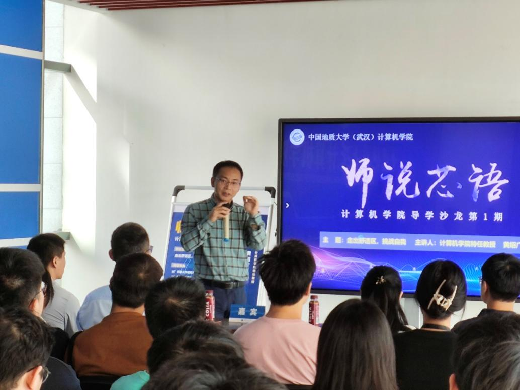 10月17日下午,bat365官方网站导学沙龙“师说芯语”第1期在学院一楼大厅开讲。第一期开讲嘉宾为bat365官方网站特任教授黄绍广,题目为“走出舒适区,挑战自我”。
