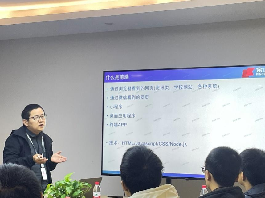 参观结束后,武海涛先生作了题为《大学生活规划和职业发展交流》的报告。他表示,在当前的国际局势和软件国产化的趋势下,金山办公始终秉持技术立业的初心,未来将以AI作为业务增长点,前景无限。他说,IT行业虽然迭代变慢,但是高素质、高水平的人才仍然稀缺,鼓励同学们坚持横向发展,以兴趣为本,辅以实践,做好时间规划,力争成为AI时代的优秀程序员。
