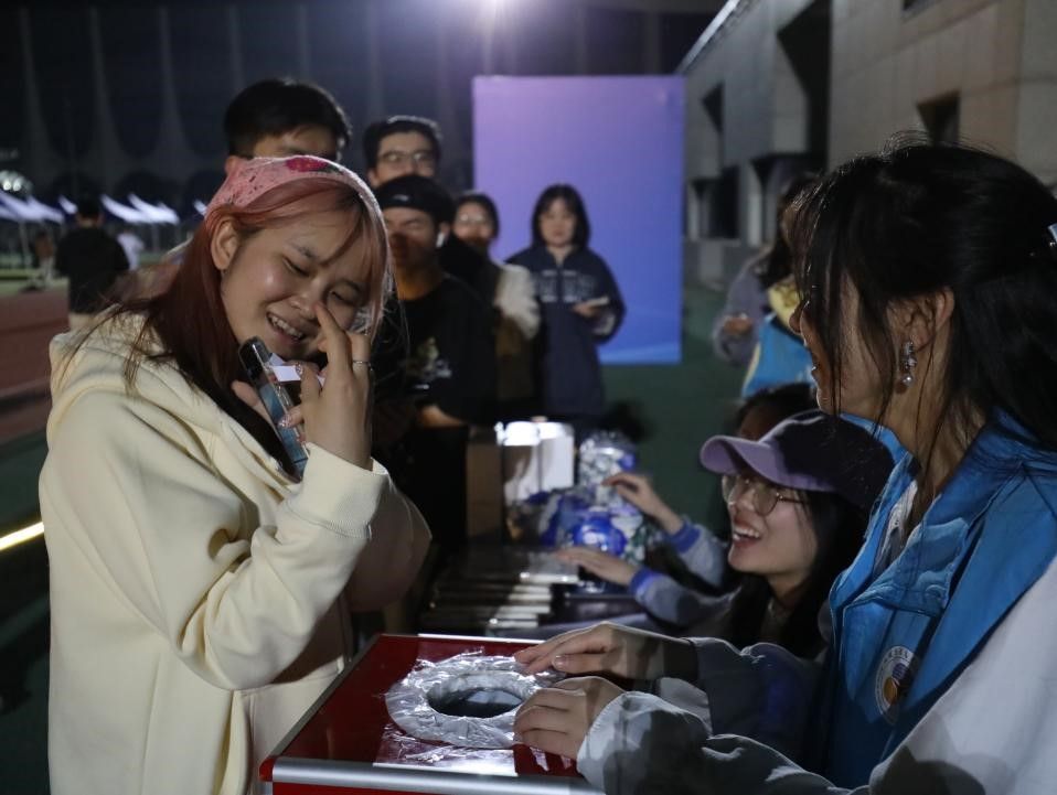 20:00,猜歌名活动作为亮点环节,吸引了众多师生踊跃参与,为春夜增添了浓郁的青春气息与音乐魅力。活动现场,热闹非凡。当一首首风格各异的歌曲响起,同学们瞬间被点燃热情。从节奏明快的流行金曲,到充满情怀的经典老歌,每一段旋律都像是一把钥匙,打开了大家记忆的大门。经过多轮激烈的角逐,猜歌名活动圆满结束。不少同学满载而归,赢得了精美礼品,这些奖品不仅是对他们音乐知识的肯定,更是本次活动美好回忆的见证。