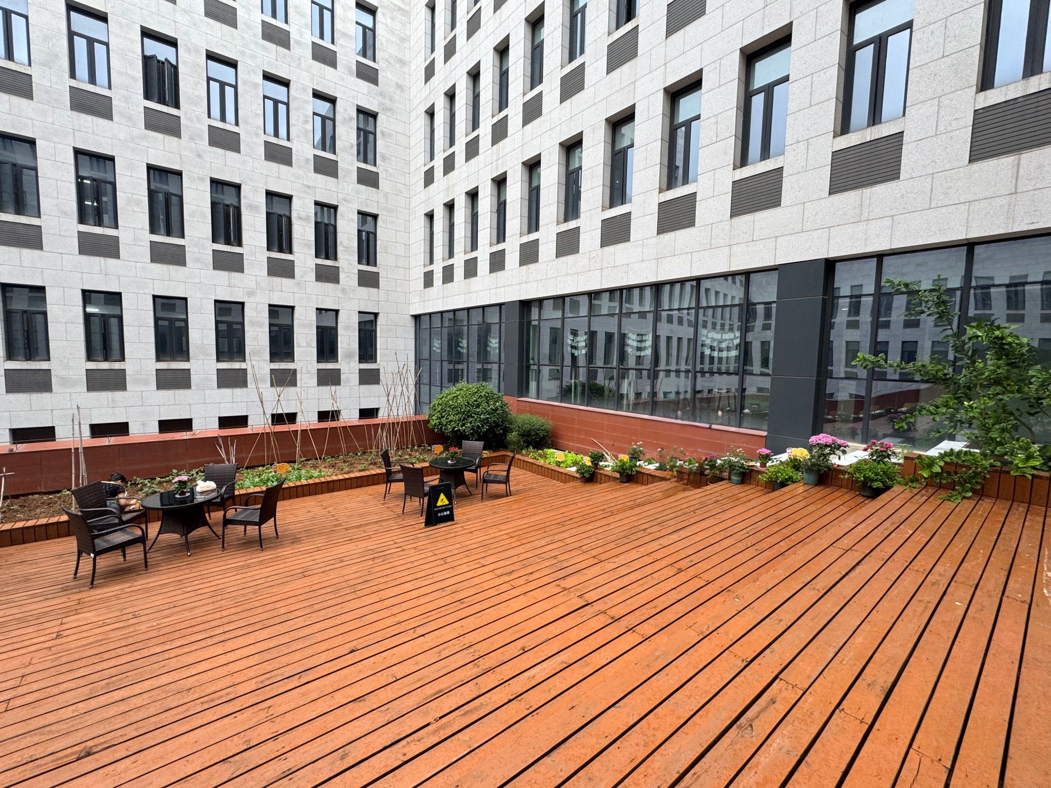 李欢欢介绍学院“三位一体”的综合育人空间。该空间融合研究生劳动实践教育、导学互动、绿色理念宣传等育人功能。在劳动实践教育维度,通过引领研究生亲身参与播种耕种,推动劳动教育从方法理念转化为“可参与、可触摸、可感知”的沉浸式成长体验,提升研究生的劳动素养与责任意识;在导学互动维度,通过打造非正式的交流模式,拓宽导师与研究生的沟通交流场域,打破严肃的室内沟通氛围,让“亦师亦友”的成长陪伴成为导学常态;在绿色理念宣传维度,通过每年开展绿植培育大赛活动,让“绿色基因”融入研究生的学术理想与人生追求,引领研究生身心健康成长。