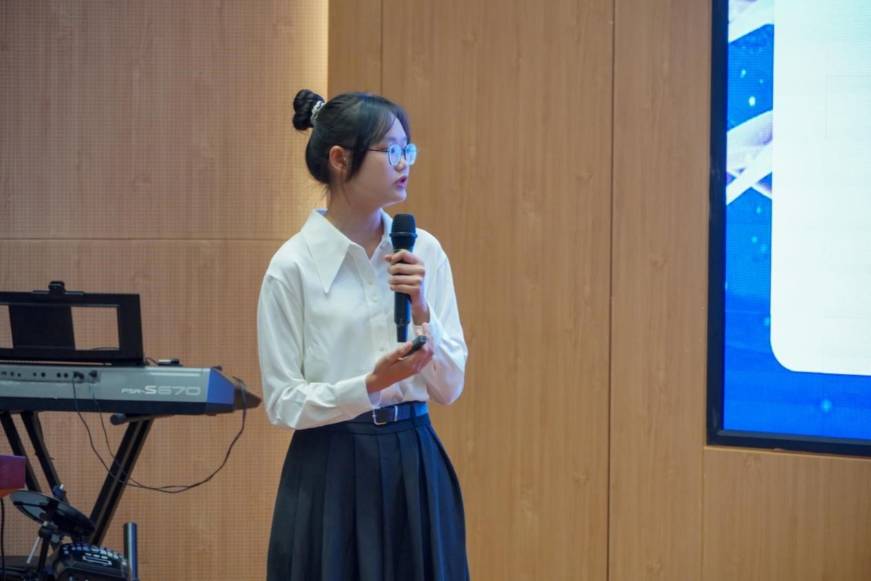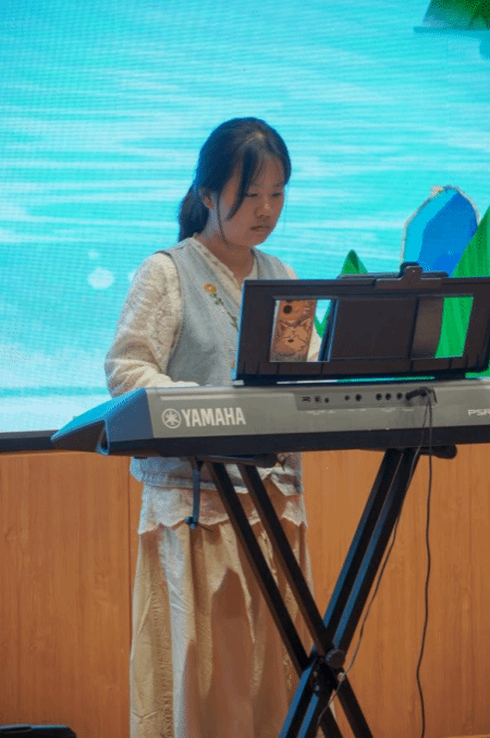 在精彩的中场表演环节,钟芷芊同学以空灵婉转的嗓音深情演绎《雨爱》,每一个音符都饱含着细腻情感;胡鑫同学怀抱吉他,用清澈而富有穿透力的歌声奏响《花海》,将现场氛围推向高潮。