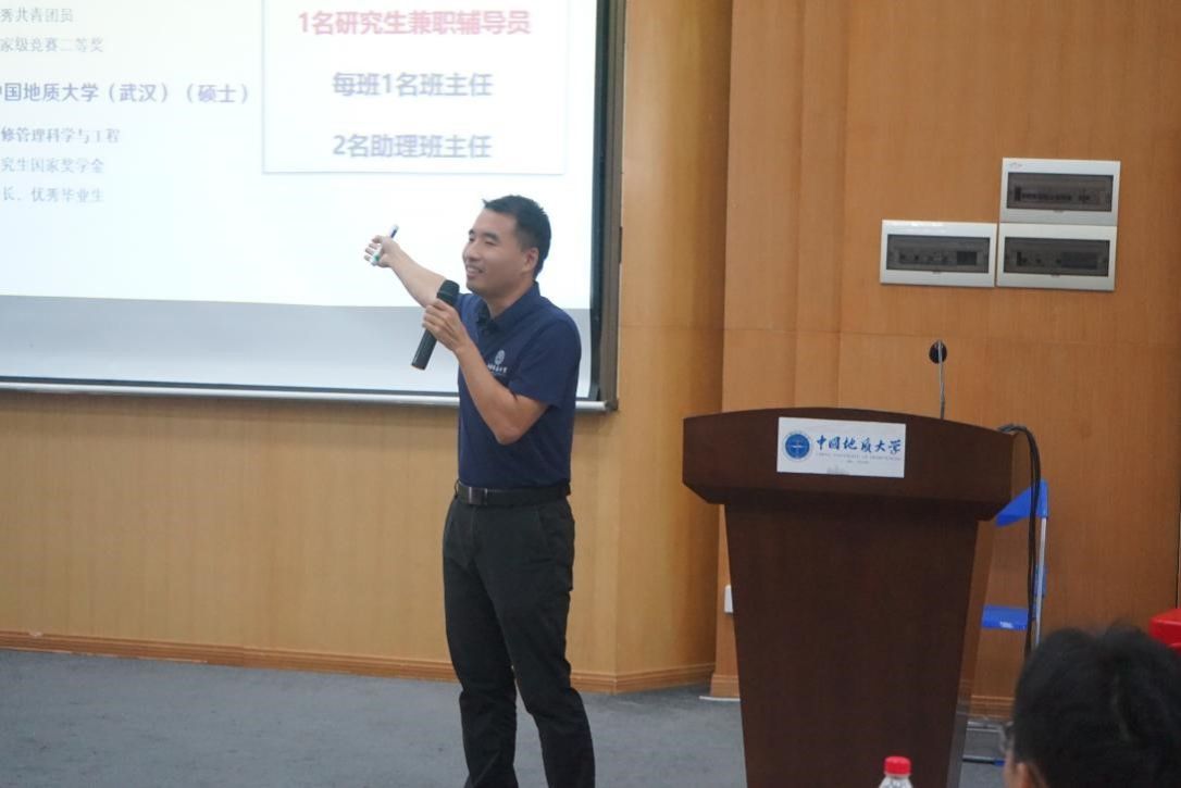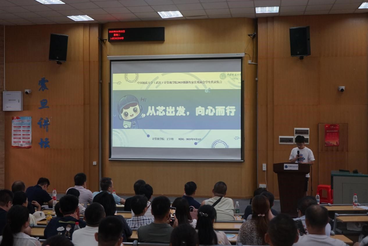 李国昌代表学院对全体新生家长表达了诚挚感谢。他强调,地大是一所肩负国家使命的行业特色高校,具有强大的办学实力、优良的校风学风传统和一流的人才培养质量,为国家的发展作出了重要贡献;我们bat365官方网站具有一流的师资队伍、一流的学科专业、一流的科研产出和一流的人才培养质量,大家选择地大、选择计算机,是学生及家庭重要的正确选择。希望家长朋友们,一要积极转变观念,尊重理解支持孩子的选择,教育孩子学会欣赏自己、欣赏他人,鼓励孩子走出舒适圈迎接挑战、加强历练开阔心胸、诚信为本承担责任,注重倾听孩子的重要关切;二要注重与学校的沟通,既要让班主任、辅导员全面及时准确了解孩子的成长背景,又要不定期了解孩子的成长状态,适时修订人才培养方案;三要继续打拼,把家庭经营得更幸福美满,为孩子的成长打造强大而温馨的大后方。希望加强家校协同,把优秀的苗子联合培养成有作为、敢担当,顶天立地大的地大计科人。