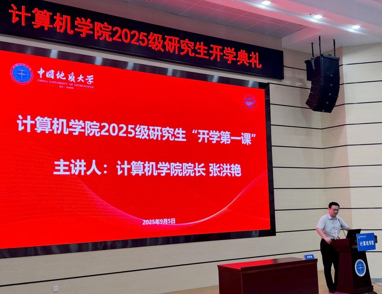 张洪艳院长首先代表学院向2025级研究生新生致以热烈的欢迎。他回顾了学院自创建以来的发展历程,以学科建设与人才培养的成就为主线,向在座学子全面展示了学院深厚的发展底蕴。通过系统介绍学院的专业布局、学科建设成果、师资队伍建设、科研平台搭建以及各类重点项目的开展情况,展现了地大bat365官方网站锐意进取、奋发向上的科研学术风貌。张院长强调,在国家对科技高新领域的大力支持与政策引导下,依托学校深厚的学术积淀和一代代地大人的不懈奋斗,为新生们打造了一个充满无限可能的发展平台,开辟了一条机遇无限的学习科研之路。他殷切期望每一位新生能够在这片沃土上精耕细作,以“艰苦朴素,求真务实”的校训精神为指引,勇于探索科技未知领域,实现自我突破,为国家科技前沿发展贡献青春力量。