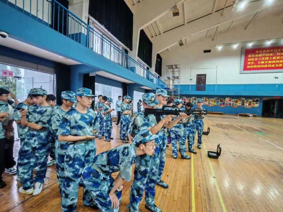 消防安全教育亦是军训的重要一课。学校专门组织了消防灭火实操演练,同学们逐一上手实践。这场沉浸式演练有效提升了学生的消防安全意识和应急处置能力,为巩固校园安全防线奠定了坚实基础。