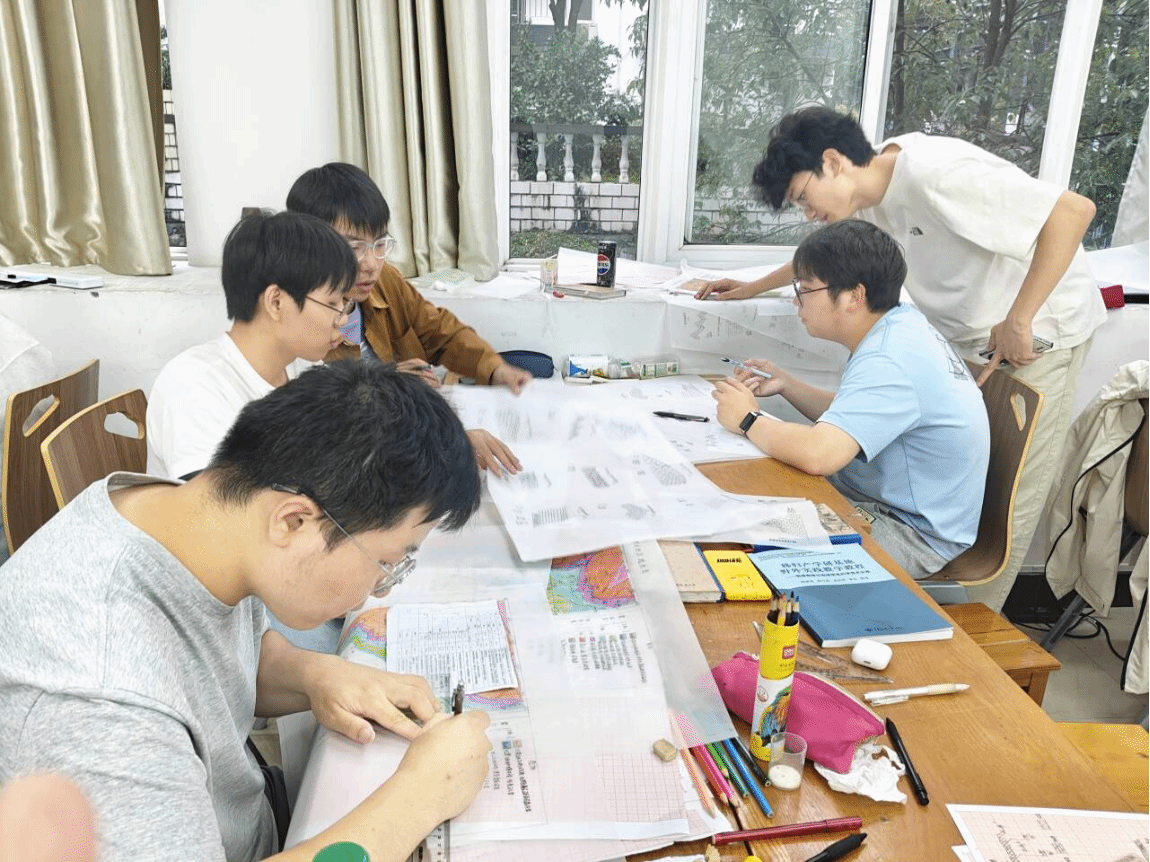 有的小组聚焦图件细节,用不同粗细的线条区分地质界线与路线轨迹,在关键分界点旁标注岩性名称与测量数据;有的小组则专注报告修改,对着导师此前提出的建议,补充地层演化分析,完善数据表格的格式规范。期间,张志庭老师、何珍文老师和董玉森老师穿梭于各小组之间,针对报告中的逻辑漏洞、图件里的标注误差耐心指导,“地质报告要像地层一样严谨,每一个数据都得经得起推敲”,老师的叮嘱让同学们更加注重细节。傍晚时分,不少小组完成了报告初稿与地质图终稿的整合,看着桌上厚厚一叠成果资料,大家脸上满是成就感——这些不仅是实习的作业,更是读懂地球密码的“钥匙”。