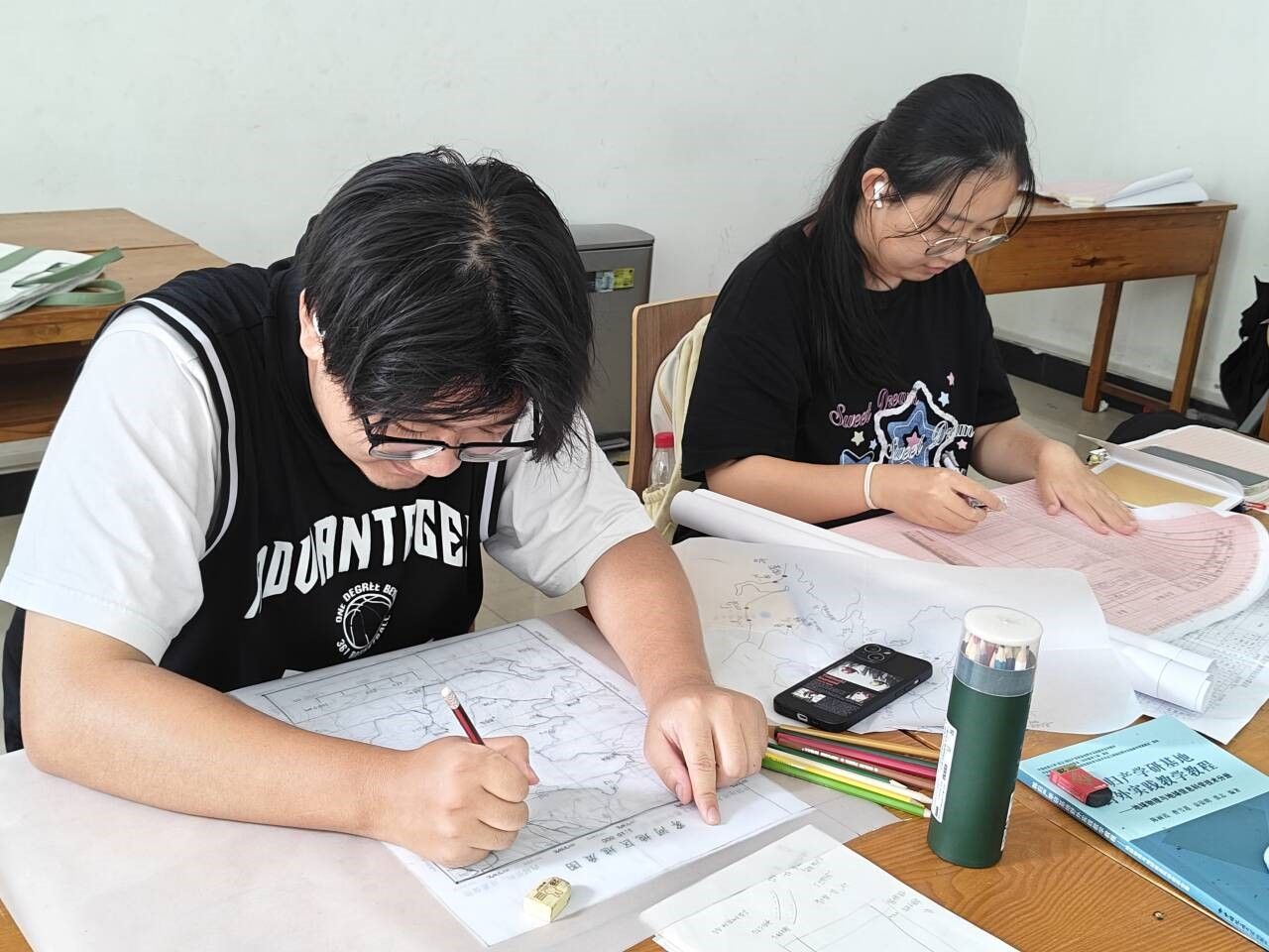 9月22日,秭归实习基地的综合楼教室内,少了往日奔赴山野的喧闹,多了笔尖划过纸张的沙沙声与键盘敲击的清脆响——同学们在室内开启填图任务与报告编写。