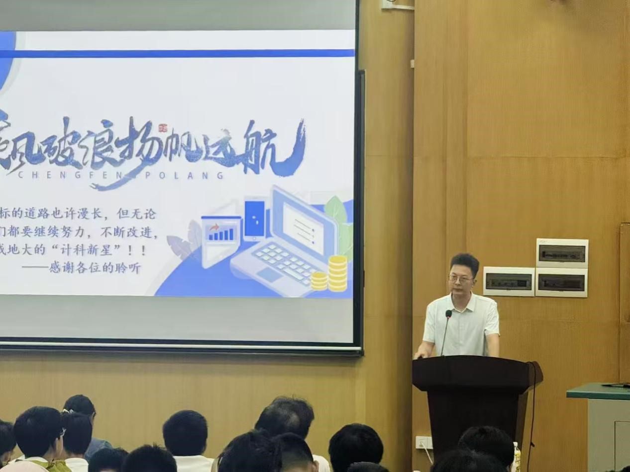 宣讲伊始,bat365官方网站团委书记、双创专员王太茂老师结合专业特点为新生介绍了学院双创工作体系,并阐述了计科学子在数字时代的应为与可为。他希望以此次讲座为契机,能为广大同学种下一颗“种子”、指明一个方向、共创一个未来,鼓励同学们从大一开始参与科创活动,在实践中淬炼青春。