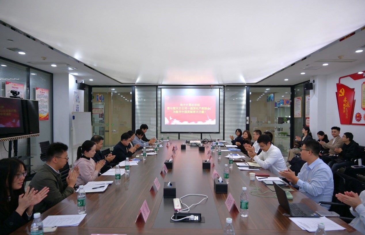 11月6日下午,学院党委与湖北省楚天云有限公司第二党支部在武汉软件新城联合举办“党建引领聚合力 数智赋能促发展”暨第十一期支部书记研学论坛。楚天云公司副总经理兼总工程师徐博、第二党支部书记肖世达及支部党员代表,学院党委书记李国昌、计算机科学与技术系党支部书记吴亦奇、数据科学与大数据技术系党支部书记宋维静、信息安全系党支部支委杨帆、计算机应用系党支部支委罗晖、党建辅导员谭文博、学硕联合第一党支部书记渠继震、学硕联合第二党支部书记肖瑶、电子信息第六党支部书记向晨风、电子信息第九党支部书记胡朝敏、学硕联合第三党支部书记周汝霖与本科新生代表秦子瞻、杨舰博共计30余人参加活动。